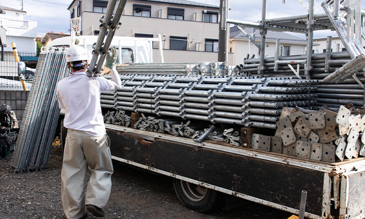 一般住宅や小規模店舗の足場工事は自社で責任をもって施工。